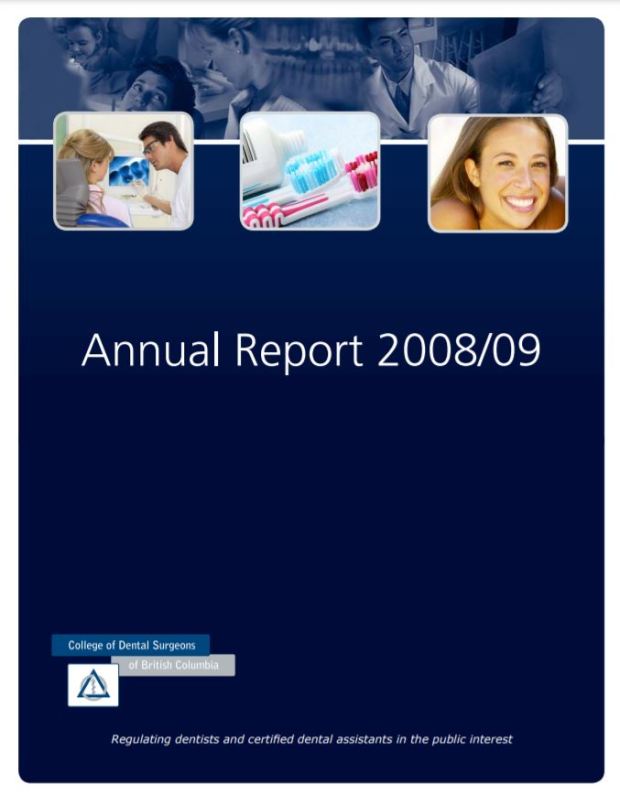 This edition was the first annual report to be designed and formatted for the College of Dental Surgeons of British Columbia. After collecting reports from the various staff members and committees, I was responsible for editing, proofreading, designing, formatting, and publishing the report both in print and digitally